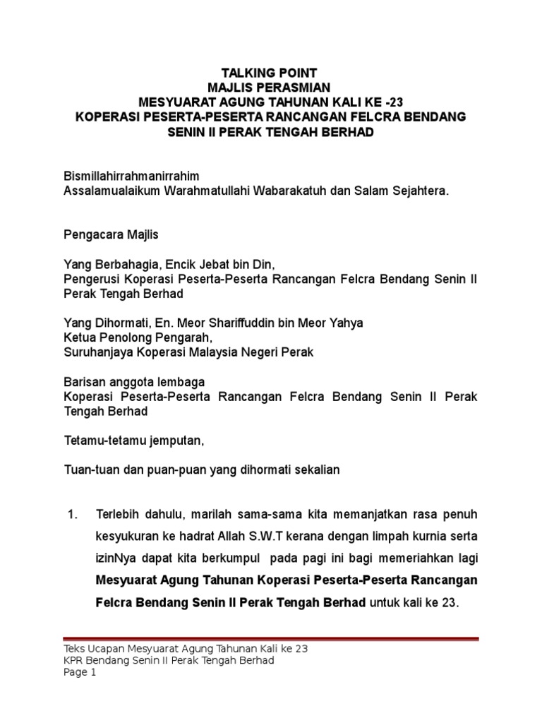 1 TEKS UCAPAN PERASMIAN YB. Untuk mendekati guru-guru yang telah dilantik untuk memastikan mereka tidak tergelincir dari menggalas. Pembukaan Sekolah Rendah Islam Darul Quran SRIDQ Teks Ucapan Pengarah Astro Datuk Mohamed Khadar Ucapan Perasmian CONTOH TEKS UCAPAN PERASMIAN MAJLIS Ucapan Aluan Page 1252.